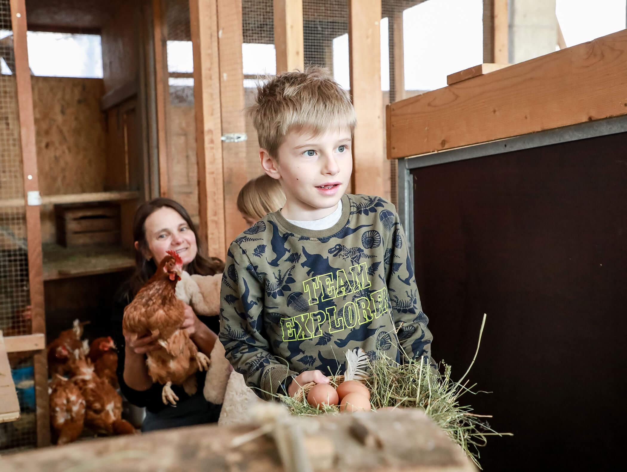 Am Hof leben drei Generationen, die einander unterstützen und voller Fleiß und Leidenschaft im Familienbetrieb mithelfen. Jeder und jede nach den eigenen Möglichkeiten.